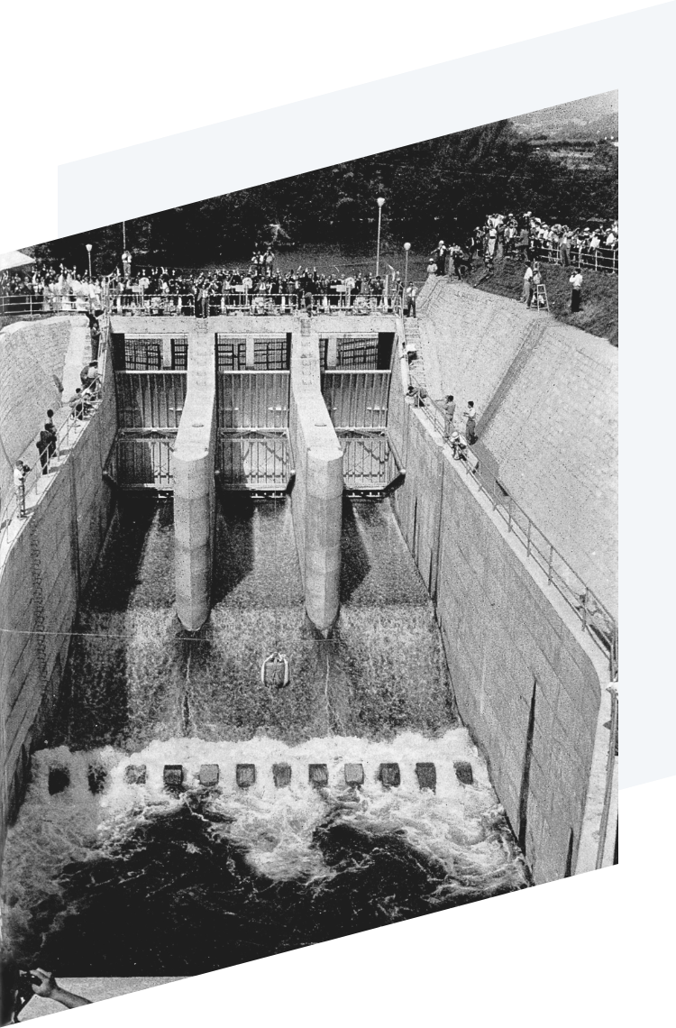 三祐コンサルタンツの歴史をさかのぼると、「愛知用水事業」とそれを実現するために血の滲むような活動を行った2人の人物のことを語らざるを得ません。愛知用水の提唱から完成、そして会社設立までの歩みを振り返ります。